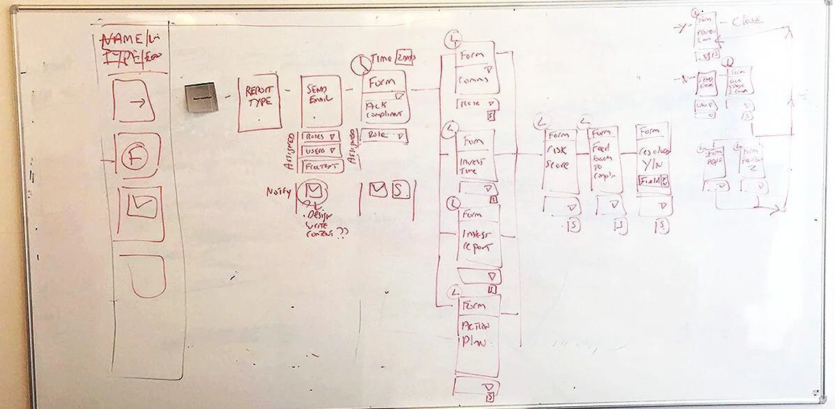 Using whiteboards, I ran sessions with the team to explore possible solutions and ways to simplify the flows. These were then captured and worked up into more formal wireframes and prototypes to test our theories.